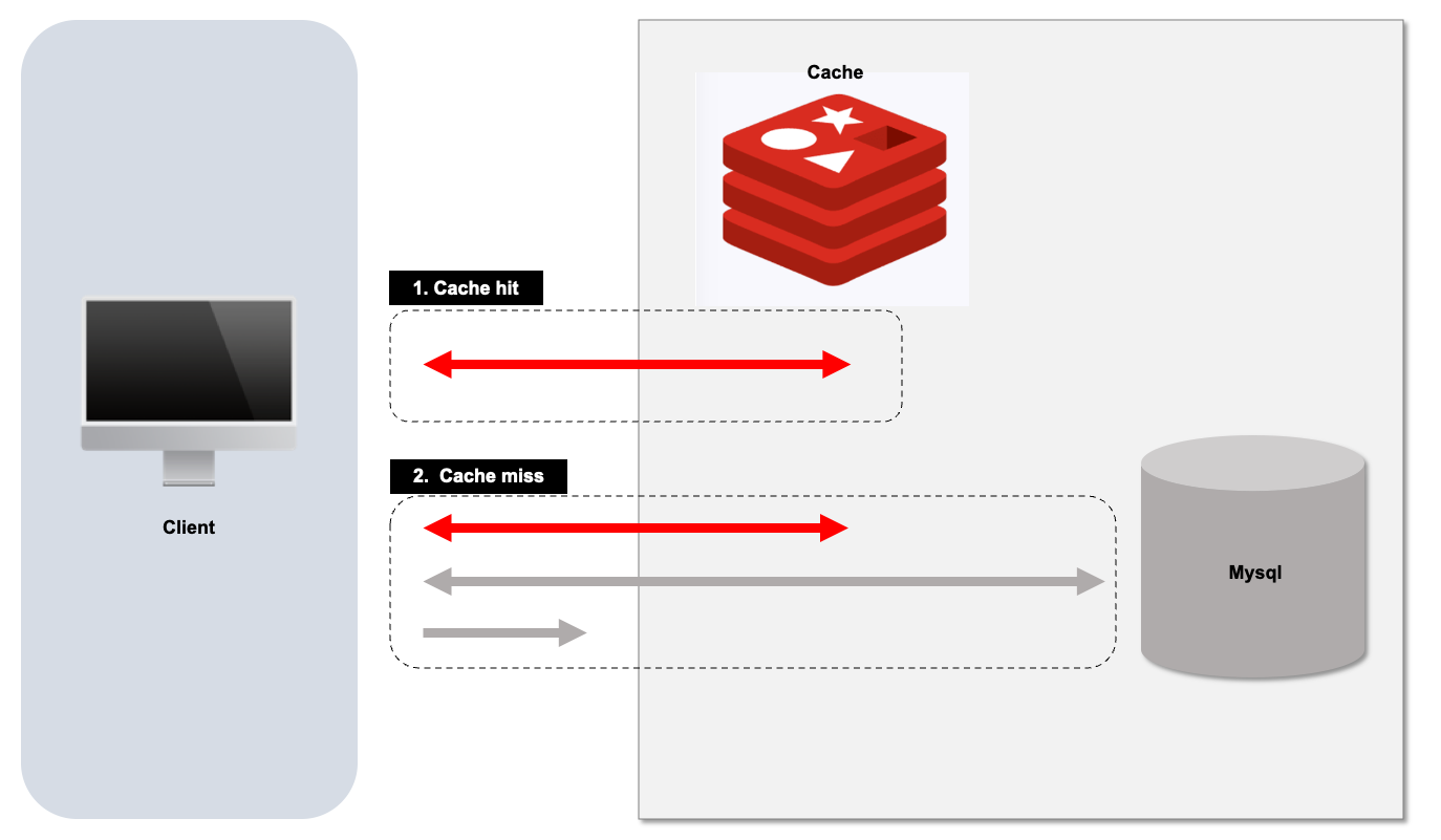 (2) Cache miss : ์บ์ ์คํ ์ด์ ๋ฐ์ดํฐ๊ฐ ์์ ๊ฒฝ์ฐ DB์๋ฒ์ ์์ฒญํ์ฌ ๊ฐ์ ธ์จ๋ค(๋๋ฆผ)
